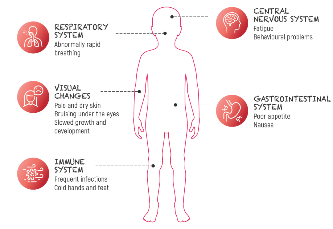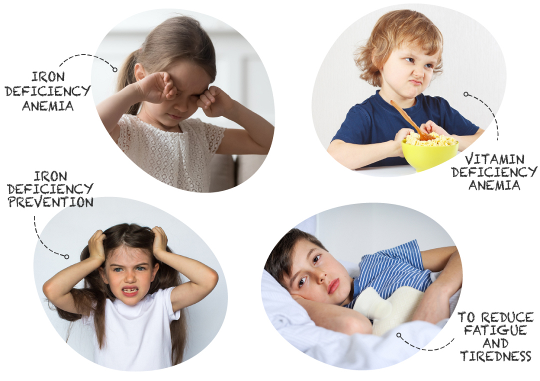Iron is essential to the production of hemoglobin, a protein in red blood cells that shuttles oxygen to organs, muscles, tissues and cells, without sufficient iron intake, important parts of the children’s body will be affected.